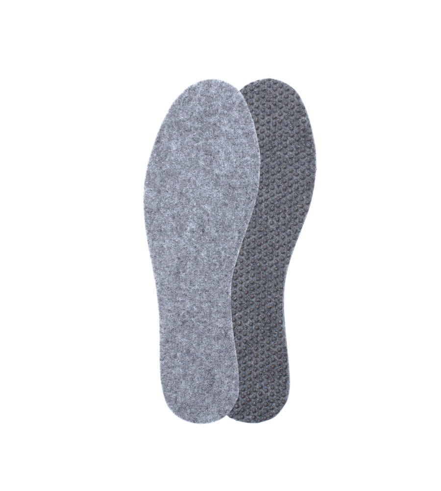 Meleg, kényelmes és csúszásmentes filc talpbetét a hideg napokra. Hőszigetelő filcréteggel és gumipontokkal a stabil, kényelmes járásért.